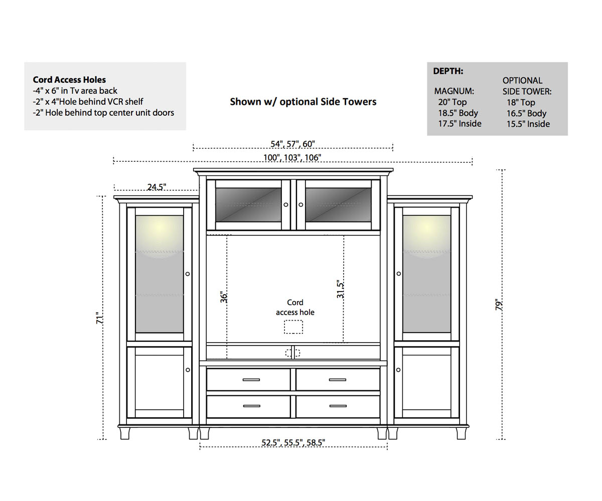 Overall: 103″W x 18½”D x 79″H